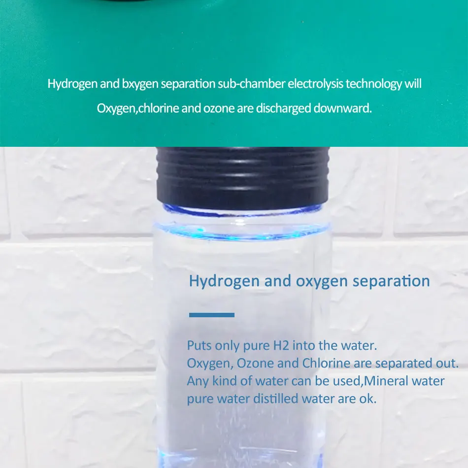 BV-015 бутылка генератора водорода делает воду в высокой концентрации водорода от 1000ppb-3000ppb, ОВП от-300мв до-600мв. Самое главное, благодаря высокому качеству мембраны DUPONT N117, она помещает только чистый H2 в воду. Кислород, озон и хлор отделены. Таким образом, Водородная вода, которую вы получаете, 99.99% чистый H2, без хлора, без кислорода, без H2O2, без озона. Может прикрепить одноразовые пластиковые бутылки для питьевой воды, портативные для путешествий, работы и офиса. Можно использовать любую воду: минеральную воду, чистую воду и дистиллированную воду. Он может электролировать горячую воду, даже может непосредственно сделать водород высокой чистоты богатой водой и сделать чай одновременно. Кроме того, эта машина использует технологии PEM и SPE для производства чистого 99.99% H2 водорода. Прикрепите канюлю, и вы сможете дышать чистым молекулярным водородом.