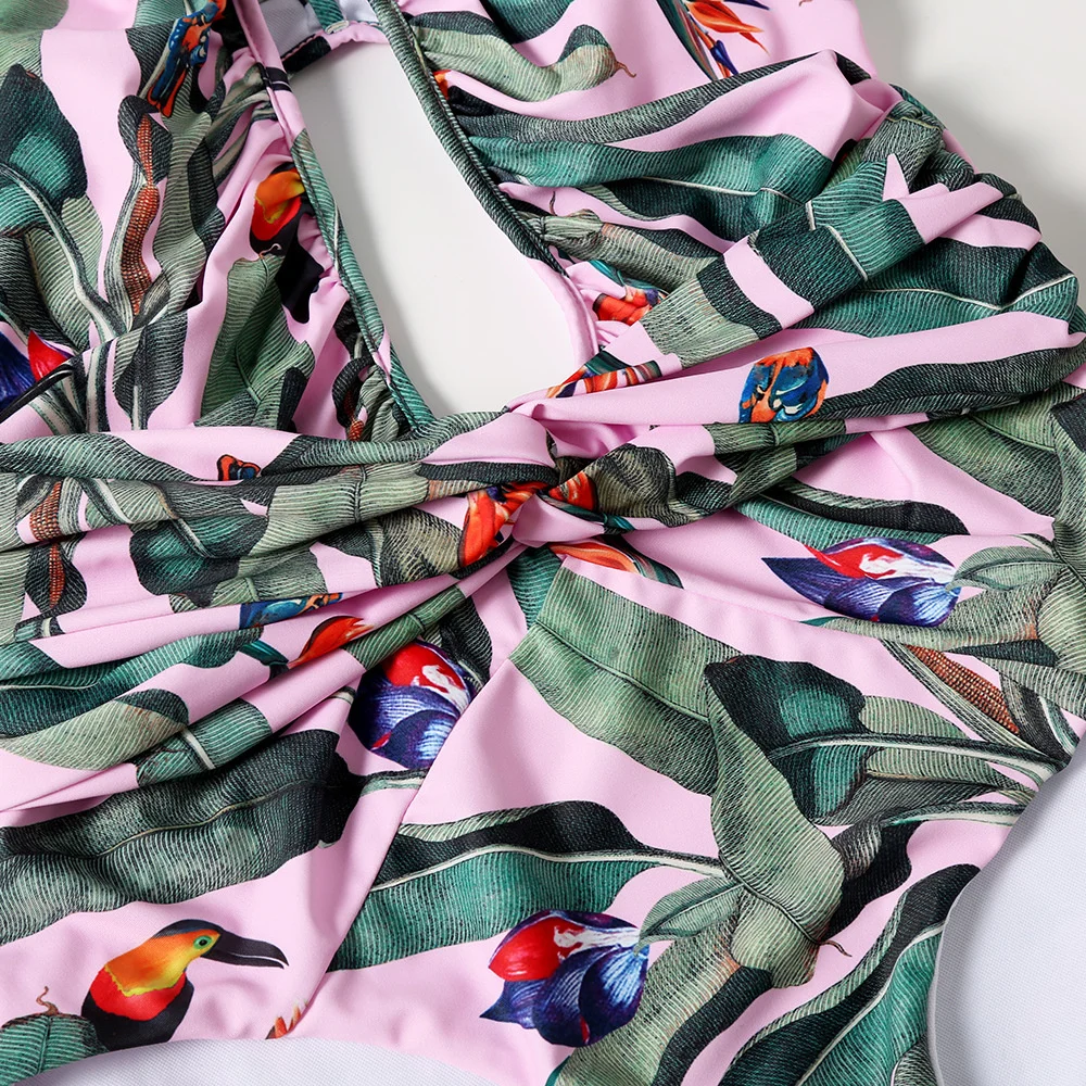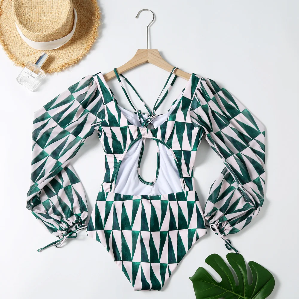 Сексуальный тропический Купальник с длинным пышным рукавом-фонариком и открытой спиной, Женский Монокини 2021, Цельный купальник для женщин, купальный костюм, трикини