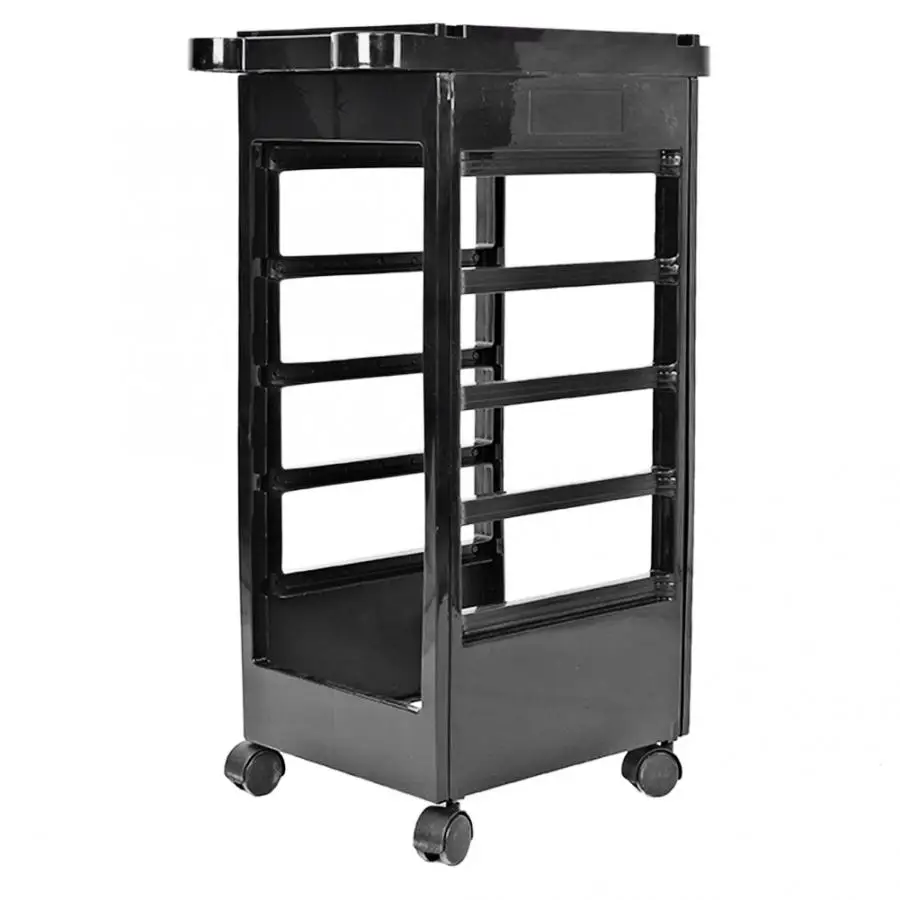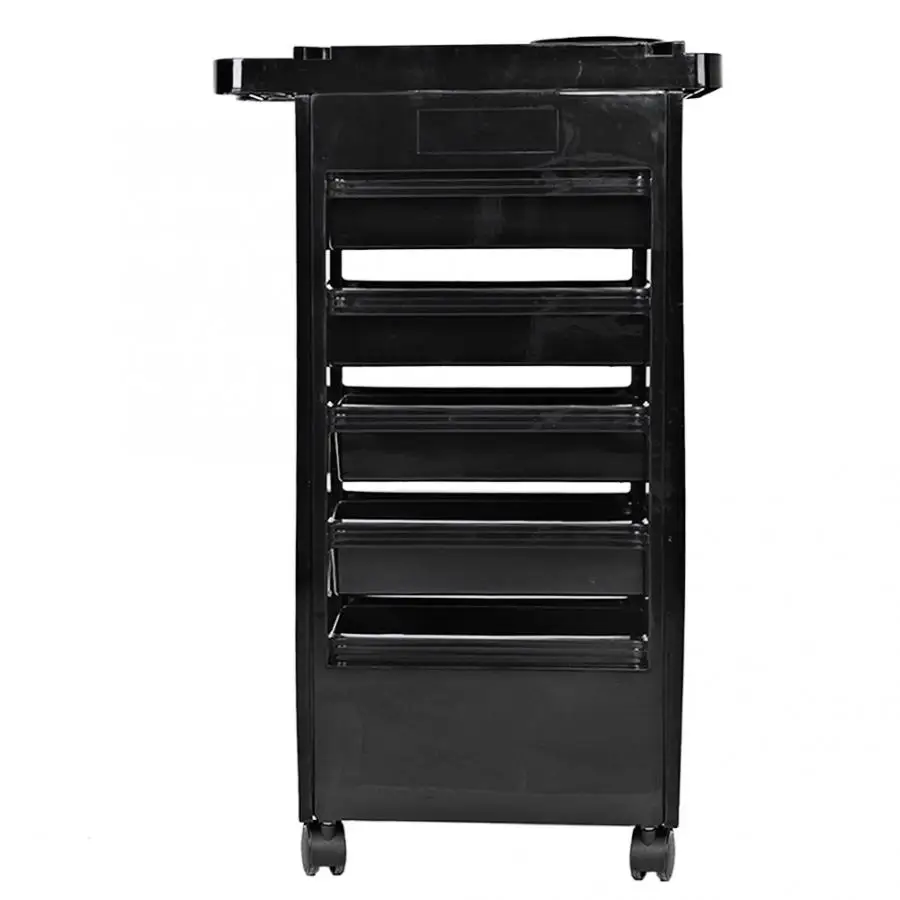 This Hair Salon Instrument Storage Cart has 5 drawers, big capacity, easy for storing lots of tools. Working area at the top with multiple compartments and blower supports. Absolutely a necessary tool for your barber shop or beauty salon.