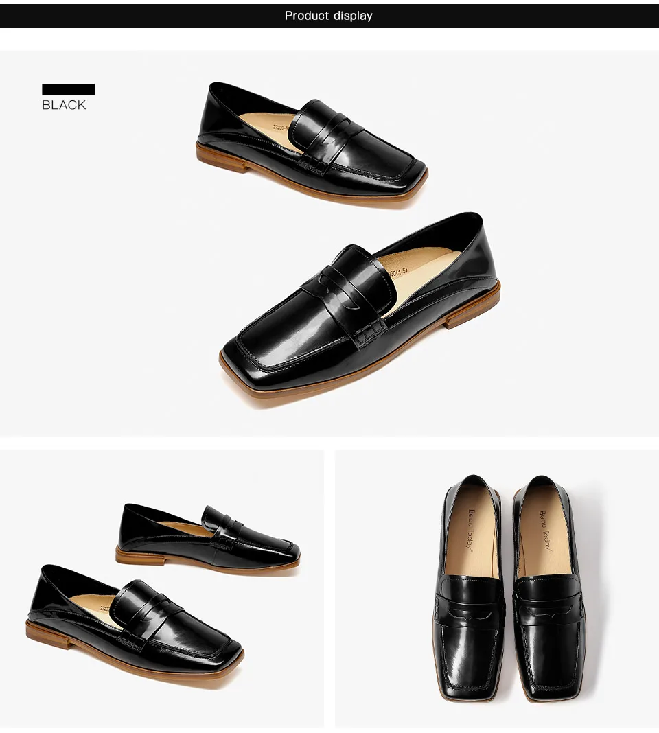 100% из натуральной кожи Лакированная кожа в верхней части Дышащая подкладка из овчины Мягкая стелька из овчины Нескользящая и легкая резиновая подошва из пены Обувь без шнуровки; Мокасины; Стиль Обувь с квадратным носком Хорошее качество Ручной работы Обувь с коробкой Высота каблука: 1,5 см Доступные цвета: черный, белый