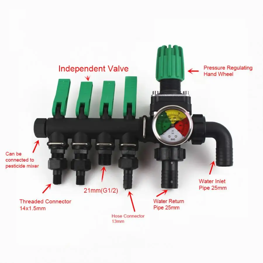 1. Высокое качество сельскохозяйственный опрыскиватель контроль клапан, 4-точечная делитель воды с ВКЛ-ВЫКЛ клапан.Спецификация:
