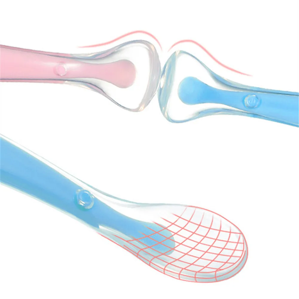 Маленькая мягкая силиконовая ложка профессионального дизайна для ребенка, чтобы адаптироваться к переходу от бутылки к ложке кормления ребенка.