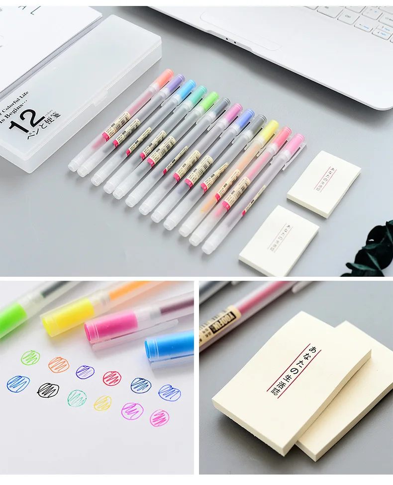 12 штук/упаковка прозрачная кавайные ручки живопись гелевые ручки арт 0,5 мм ручки с ручкой чехол для девочек Подарки школьные канцелярские принадлежности