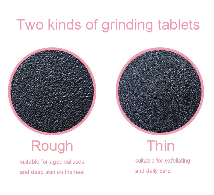7. Два вида шлифовальных таблеток. Грубая (30 шт.): подходит для состаренных мозолей и омертвевшей кожи на пятке; Тонкая (30 таблеток): подходит для отшелушивания и ежедневного ухода