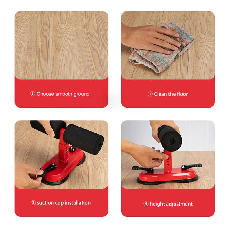 The sit up bar with a super big 5.9inch suction cup on bottom is convenient to install. Press the whole sit up bar and the handle at same time to fix the suction cup easily, no need of other tools.