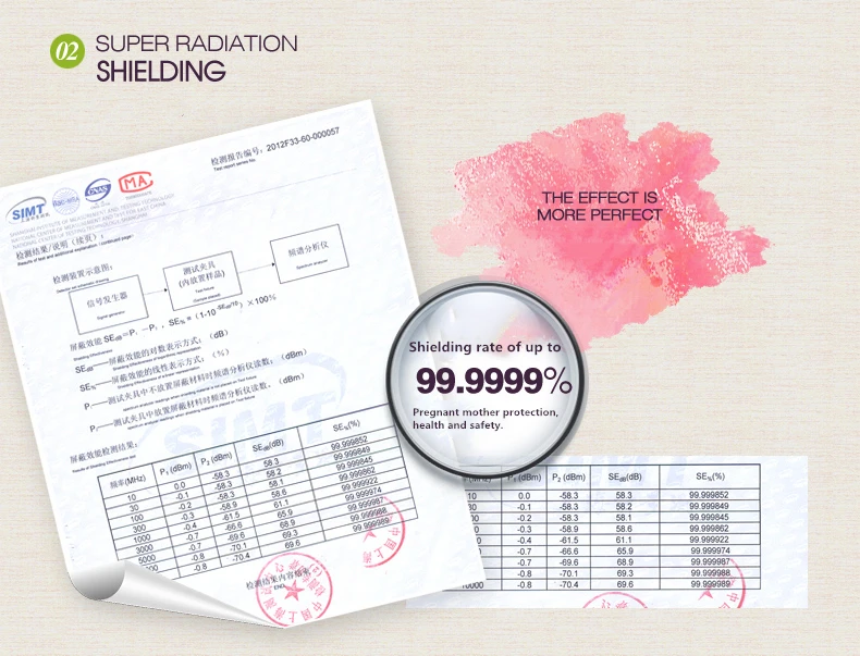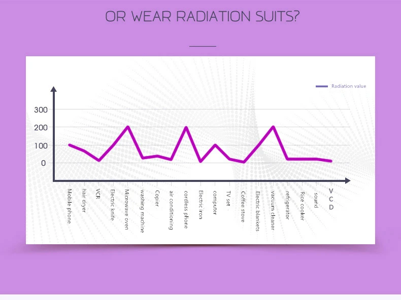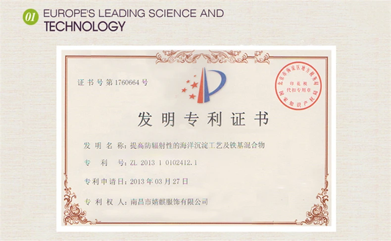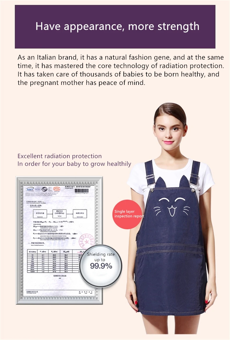 Согласно соответствующим статистическим данным, каждые 30 секунд в Китае добавляется один бракованный ребенок, и излучение является одним из виновников, приводящих к младенческим дефектам. Отечественные специалисты по электромагнитной защите-считают, что беременные женщины, носящие костюмы для защиты от излучения, способны эффективно и четко изолировать и защитить электромагнитное излучение.