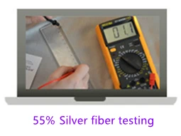 [100% тестирование серебряного волокна]Мультиметр регулируется на 200 gear. Когда красные и черные тестовые ручки соприкасаются с тестовой тканью и расстояние составляет 10 см, измеренное значение сопротивления колеблется около 0,4Ω, что указывает на то, что проводимость одежды с защитой от излучения из 100% серебряного волокна лучше, чем у 55% ткани из серебристого волокна. Таким образом, эффект защиты от излучения лучше. С помощью теста видно, что значение сопротивления 100% серебряного волокна является самым маленьким среди всех тканей, поэтому 100% Серебряное волокно имеет лучшую проводимость и эффект Анти-излучения.