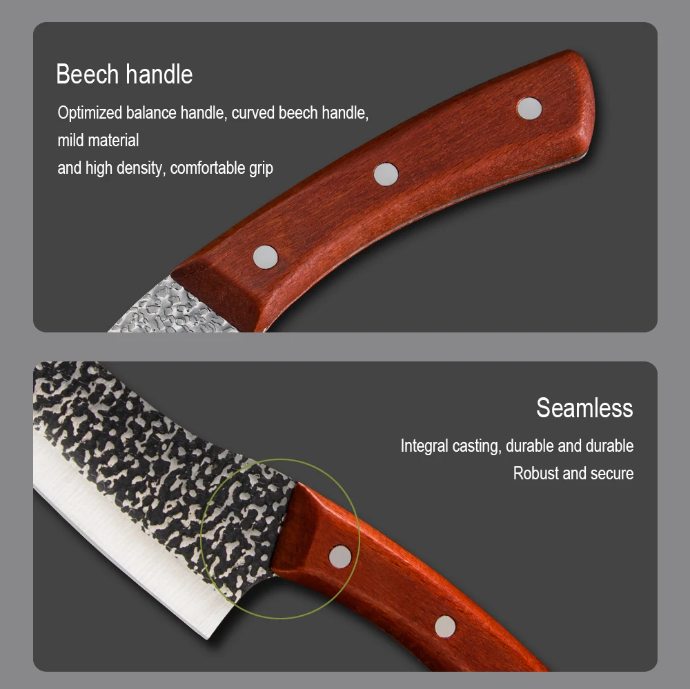 Материал: марганца Сталь Закалка всплеск: 780 градусов Температура: 180 градусов-200 градусов Материал: Кованая Высокоуглеродистая сталь ручной работы Ручка: полностью интегрированный Стальной хвостовик + дерево + заклепки Производственный процесс: в закалки-закалки молота-закалки-зажима стали-молота-закалки и других операций непрерывного цикла.