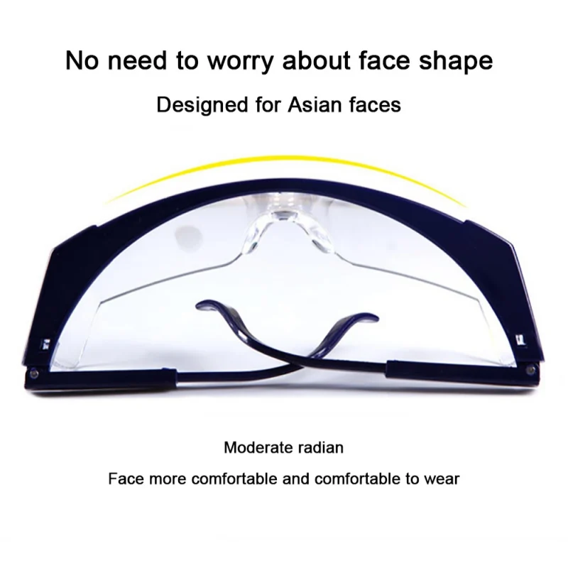 1, super protection: protective glasses with PC lenses can provide effective protection for the eye area, to a certain extent, can prevent bacteria from entering the eye, effectively reducing the risk of infection