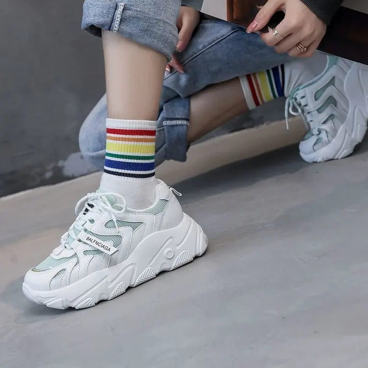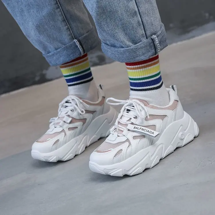 Женские кроссовки на платформе розовые теннисные туфли со шнуровкой