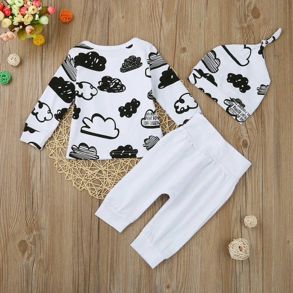 4. Модная футболка с принтом облака для маленьких мальчиков и девочек Топы Брюки шляпы, комплекты одежды Комплект, модный и подходящий для вашего малыша Ребенок