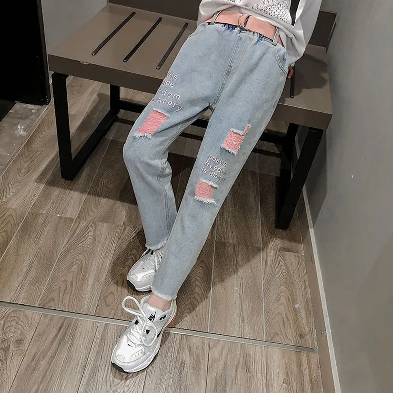 Джинсы YUKE для девочек свободные эластичные детские джинсы отдыха От 6 до 11 лет