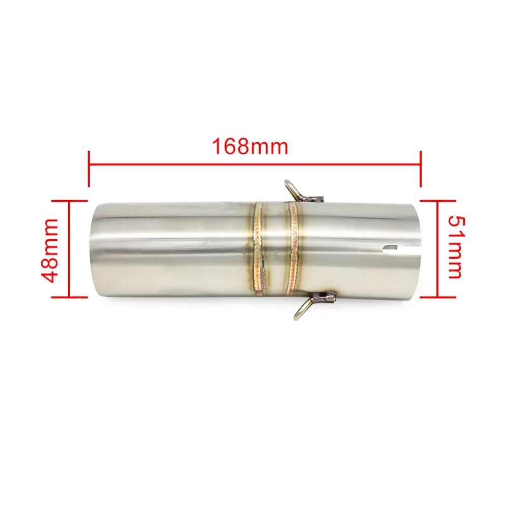 После удаления оригинальной выхлопной трубы Подключите среднюю соединительную трубу к мотоциклу, подключите выхлопную трубу к средней трубе и зафиксируйте ее для нормального использования. Обратите внимание, что внутренний диаметр выхлопной трубы составляет около 51 мм.
