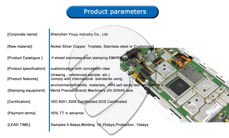 YOUJU, изготовленный на заказ Производитель деталей для штамповки листового металла, построенный в 2005 году. 5000 квадратных производственных объектов, 56 штамповочных машин, единый сервис. Крепкое внутреннее здание и печать здесь. Мы изготавливаем высокоточные терминалы, экранирование EMI, детали для глубокой вытяжки, пружинные зажимы и т. д. покрывает авто, электронные, освещение, часы и многие другие отрасли промышленности.