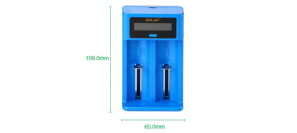 Golisi I2-это компактный мини-Смарт-заряд. Он имеет порт питания USB с дополнительным выходом 0.5A, 1A и 2A. И он совместим с батареями длиной 32 - 70 мм. И ЖК-дисплей подробно отображает информацию о зарядке. Он имеет 2 слота для батареи.