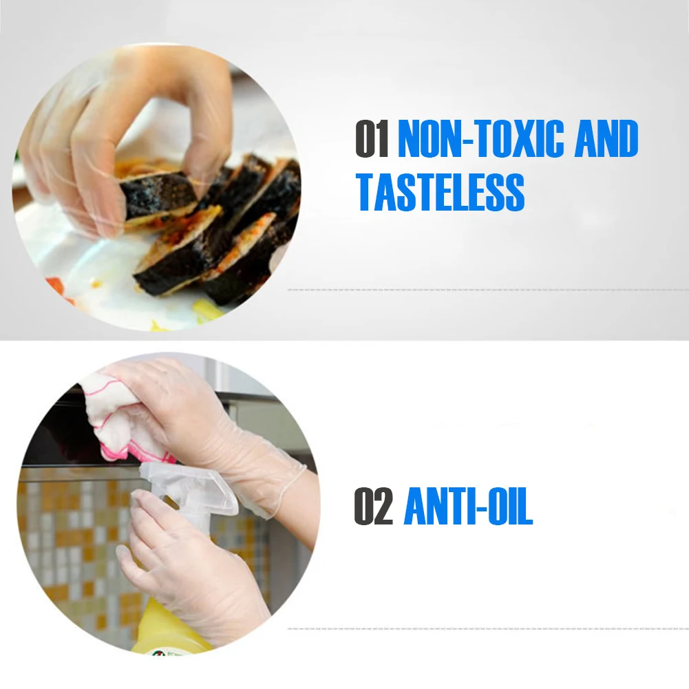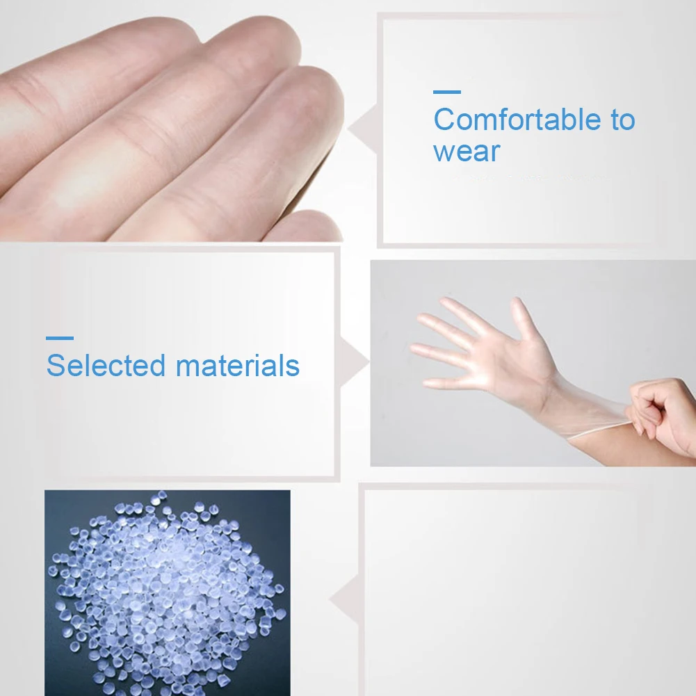 * 1. Отборный ПВХ материал, удобный и легкий в носке, одноразовые прозрачные перчатки идеально подходят для очистки кухни, приготовления пищи, ремесла и т. Д.