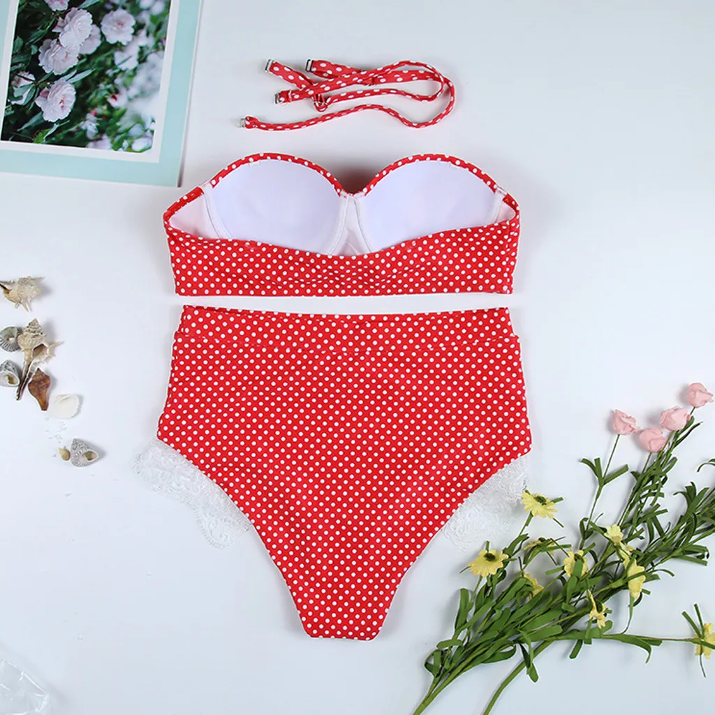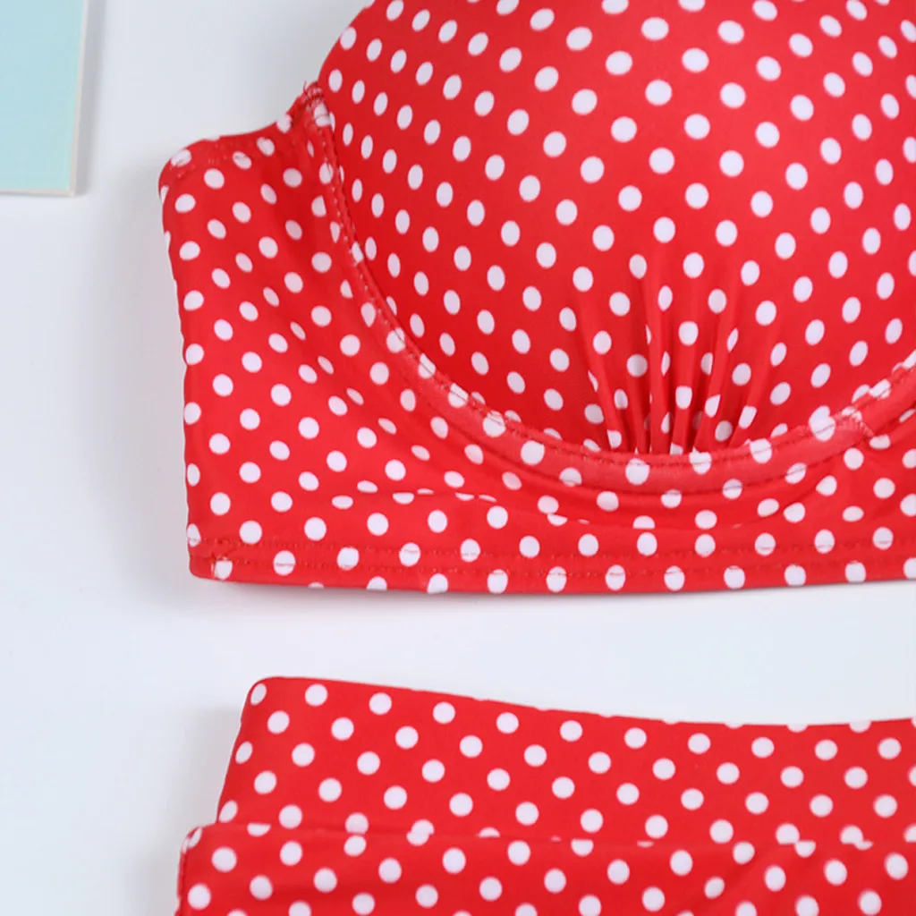Женский комплект бикини с пуш-ап бюстгальтером и высокой талией, купальный костюм в горошек