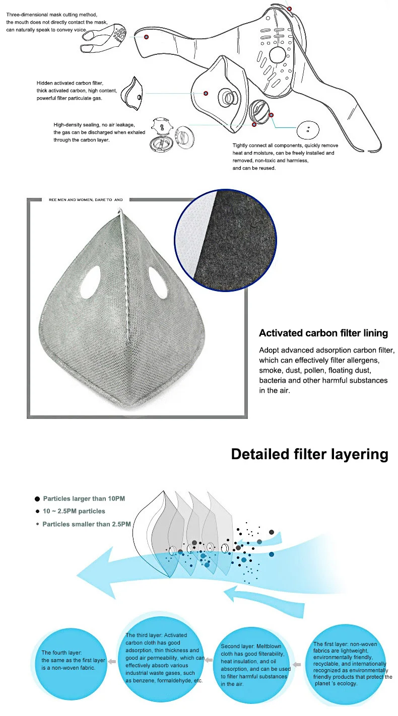 Маска для лица с фильтром с активированным углем для защиты от пыли PM 2,5