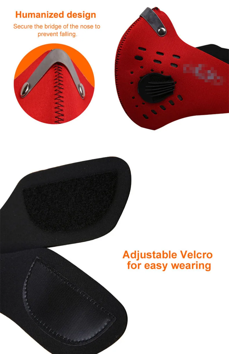 Описание: Название: Пылезащитная маска (с фильтром) Материал: неопрен, фильтр с активированным углем. Продолжительность использования: Маску можно использовать не менее 2 лет. Для тех, кто часто его использует, фильтр необходимо заменять каждые 45 дней. Если он не используется, его можно заменить каждые 3 месяца. Использование: Велоспорт, альпинизм, катание на лыжах и другие виды активного отдыха. Модель в стиле унисекс. Особенности: Фильтр с активированным углем: Сверхсильная защита активированного угля, эффективная фильтрация вредных веществ для здоровья человека, Высококачественная адсорбционная ткань и фильтр с активированным углем. Регулируемый эластичный ремень: В соответствии с дизайном человеческого лица, имеет защитную поверхность в качестве размера лица. Секция носа фиксируется, чтобы предотвратить скольжение, маска может быть дополнительно скорректирована вручную, чтобы соответствовать уникальным особенностям вашего лица. Пропускающий воздух материал. Выпускной клапан с обеих сторон маски автоматически открывается и закрывается, нет утечки воздуха, хороший фильтрующий эффект, нет знойного тепла и нет тумана. Комплект поставки: 1 шт. велосипедной маски