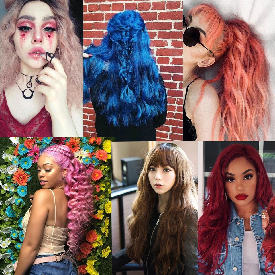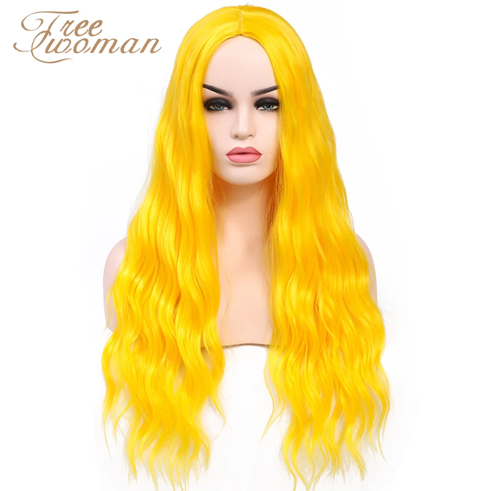Свободный женский длинный волнистый парик с челкой Лолита розовые синтетические парики для белых женщин красный синий черный парик кудрявые поддельные волосы Косплей коричневый