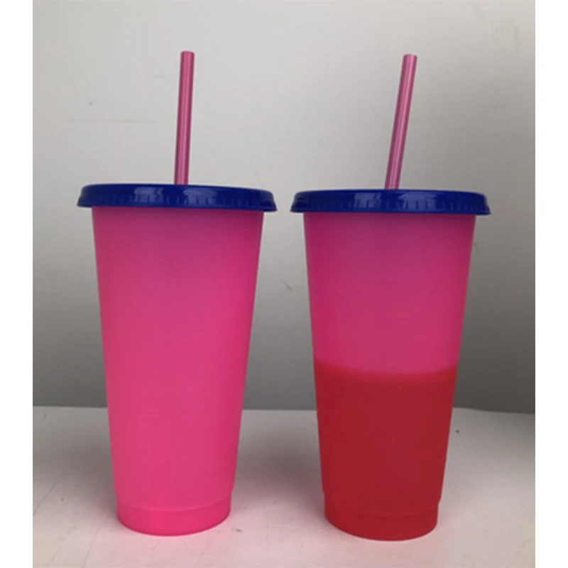 20 шт., 700 мл, меняющие цвет чашки, летние цветные пластиковые многоразовые бутылки для воды с соломой, набор для путешествий, чашки, свадебный подарок для вечеринки