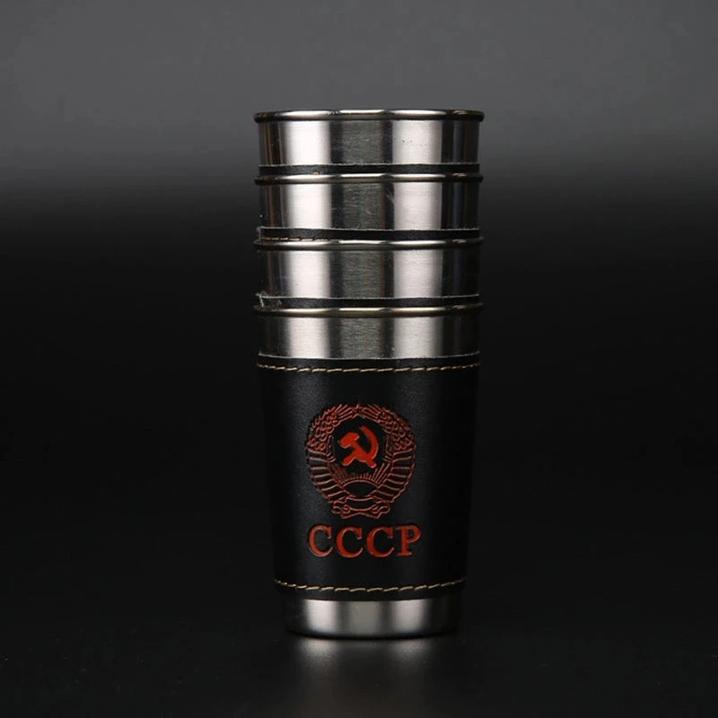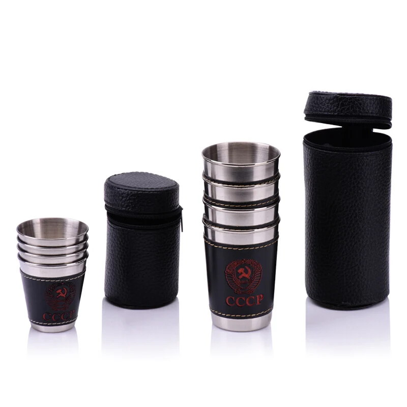 4 шт./лот походная посуда набор туристических чашек из нержавеющей стали походная чашка с черной ПУ кожей портативные Кружки для вина Виски для пикника пешего туризма пляжа