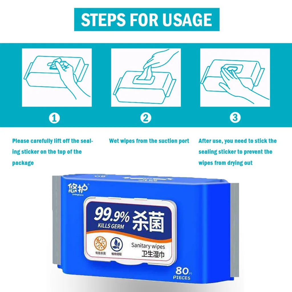 Антибактериальные влажные салфетки для здоровья рук Уход 80 салфеток/упаковка