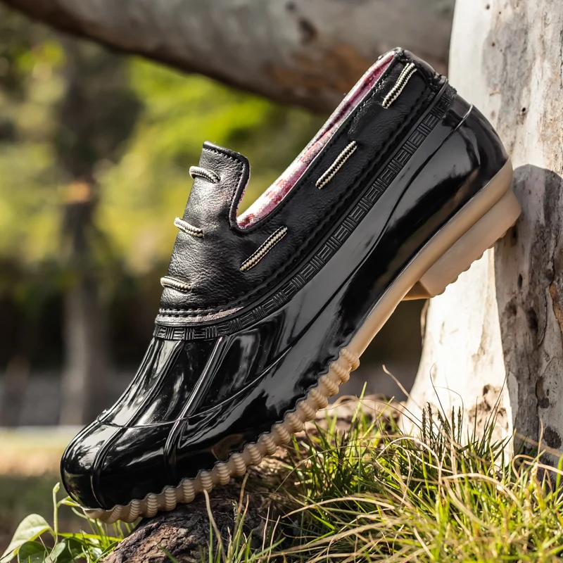 Обувь для девушек и женщин обувь "Уточка" с Водонепроницаемый молнии резиновая подошва; Женские резиновые ботинки ботильоны со шнуровкой летние на высоком каблуке Женская обувь