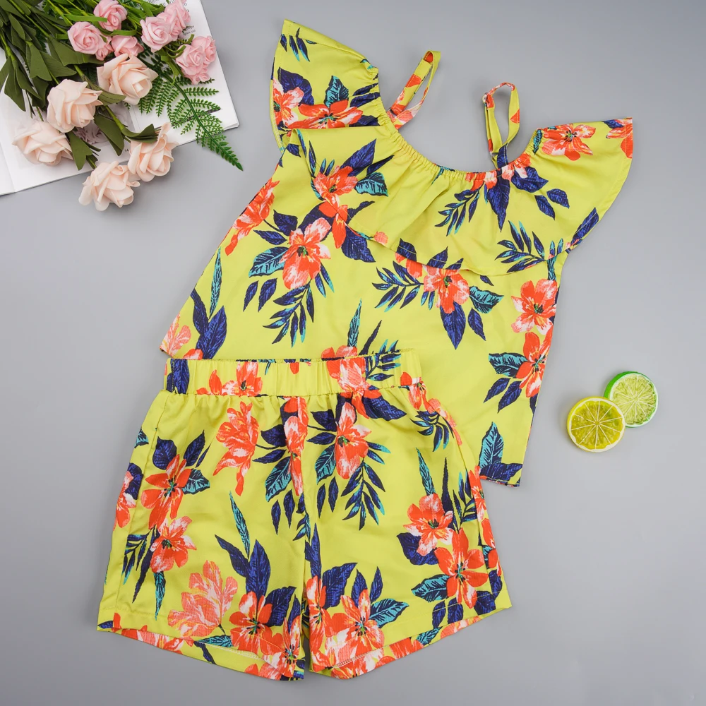 Newest Fashion Kids Baby Girls Clothes!! High quality and Brand new 100% Main Color: AS The Picture New in Fashion Material: Cotton BlendAttention plz: If your kid is plump, we recomend choosing a larger size, thanks. Please kindly refer to your kids actual height and the size chart before buying/bidding. Thanks. Package included: 1x Top +1x Pants Size Chart: