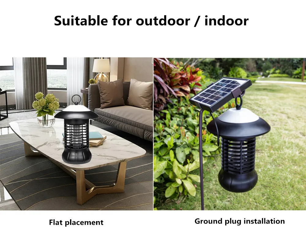 Солнечная лампа-убийца комаров на открытом воздухе 360 ° УФ-ловушка водонепроницаемый фонарь для кемпинга 2в1 Портативный USB Анти-москитная Летающая лампа-убийца насекомых