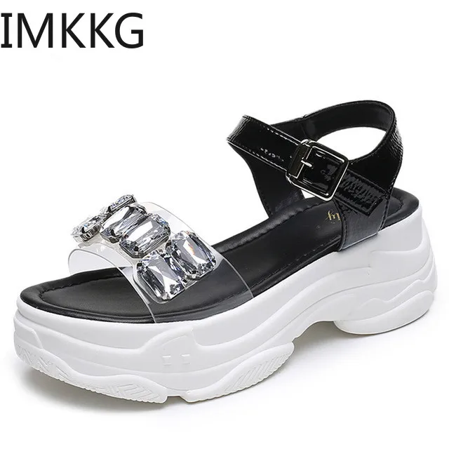 Женские туфли со стразами; Женская обувь с пряжкой сандалии Crystal женские платформе/танкетке/каблуке; Прозрачные стразы; Босоножки; Сезон летоUS $17,00