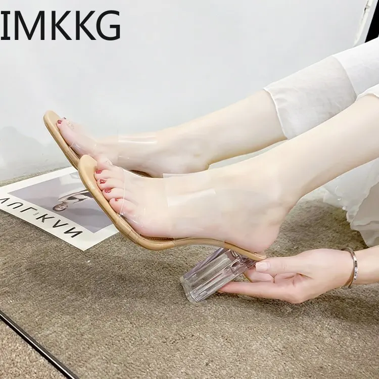 2020 женские сандалии-шлепанцы на прозрачном каблуке; Летняя обувь; Женские прозрачные шлепанцы; Туфли-лодочки на высоком каблуке; Свадебные сандалииUS $15,00