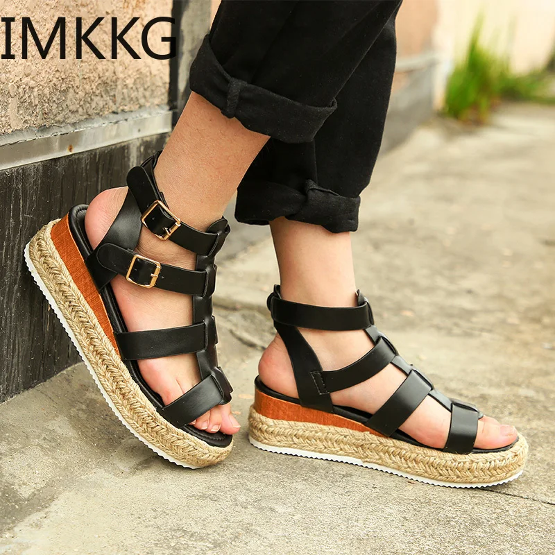 IMKKG/летние белые Эспадрильи на танкетке; Женские сандалии; Сандалии-гладиаторы с открытым носком; Женские повседневные сандалии на платформе со шнуровкой; m364US $21,51