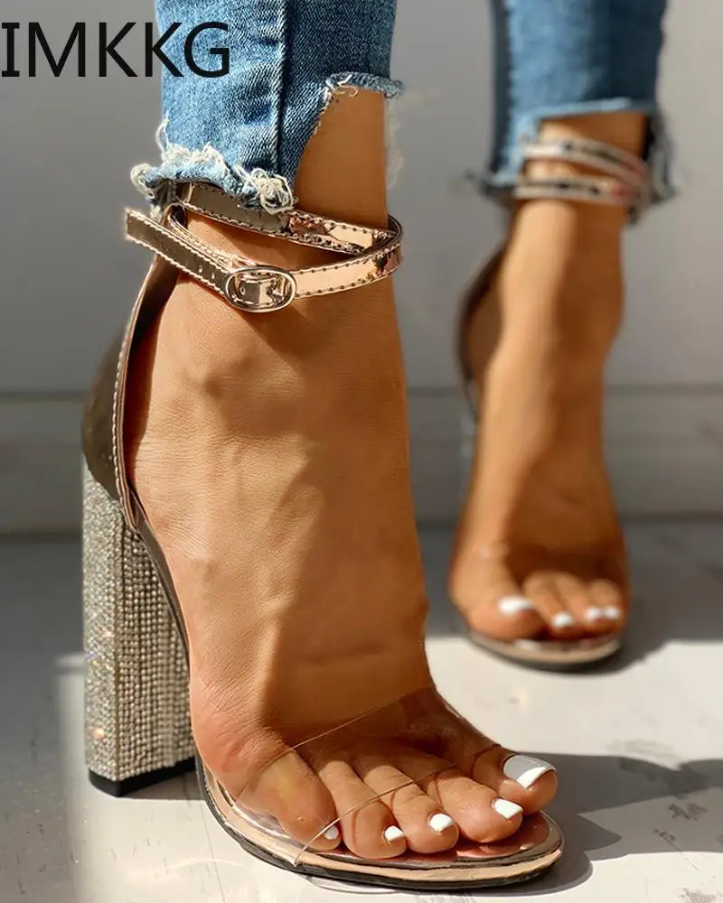 Прозрачные Свадебные вечерние туфли со стразами для женщин; Босоножки на высоком каблуке; Туфли-лодочки с ремешком на пятке на тонком каблуке; Женская обувь; Сезон весна-осеньUS $14,00