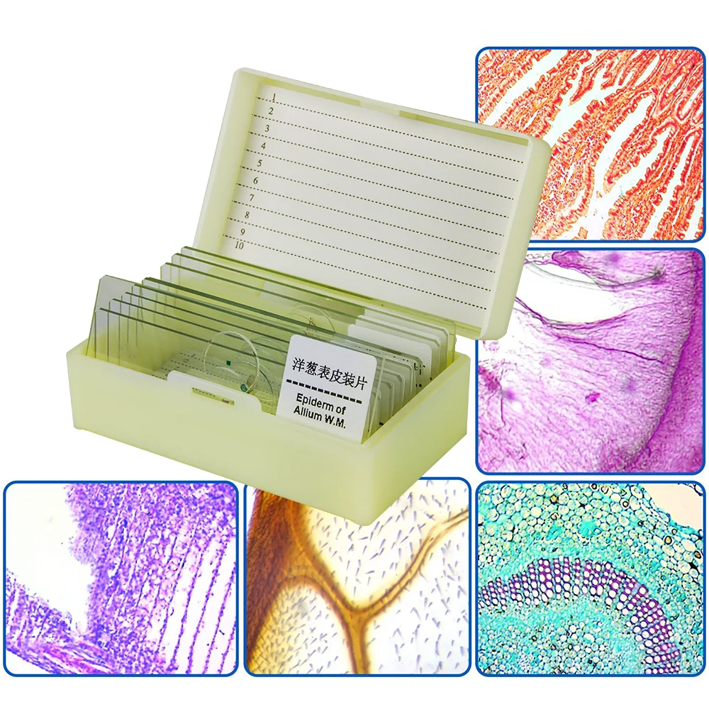 10 шт Профессиональные Стеклянные слайды для микроскопа, Обучающие образцы животных и растений, тканевые секции с пластиковой коробкой