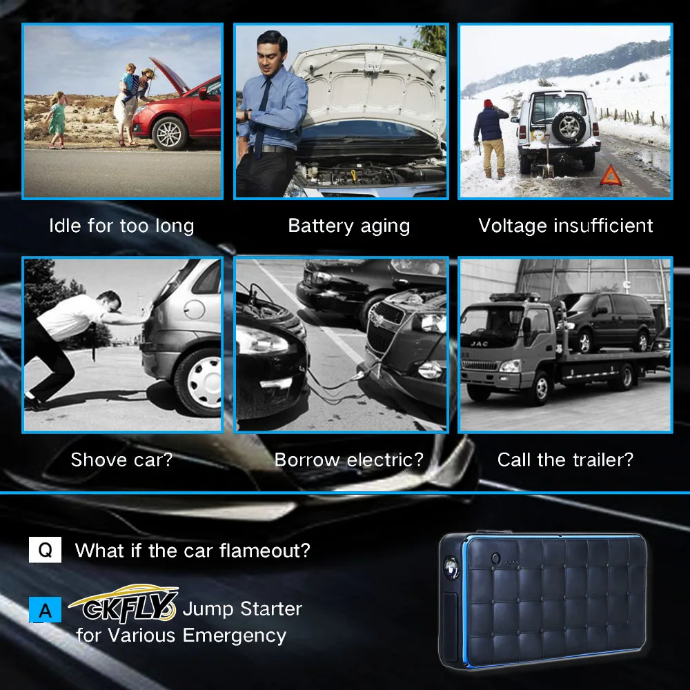 Это многофункциональное водонепроницаемое автомобильное пусковое устройство и мощный внешний аккумулятор. 1. Настоящий супер Внешний аккумулятор 28000 мА · ч-никогда больше не беспокойтесь о том, что ваш смартфон или планшет работает от батареи. 2. Водонепроницаемый уровень IP65-защищает стартер скачка, вы можете использовать его в дождливый день, даже падение в воду. 3. 1000А пусковое устройство-для запуска всех 12 в бензиновых автомобилей и дизельных автомобилей всего за секунды, когда батарея автомобиля разряжена. 4. SOS свет-если вы находитесь на открытом воздухе в кемпинге и окажетесь в аварийной ситуации, вы можете использовать сигнал SOS стробоскоп для привлечения внимания. 5. Светодиодный свет-использовать в качестве факела со встроенной функцией светодиодного фонаря.
