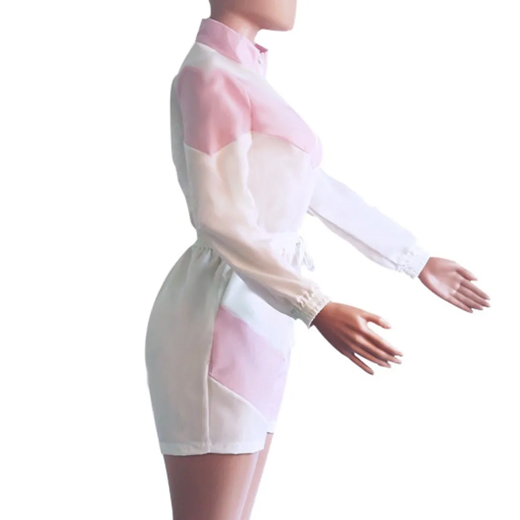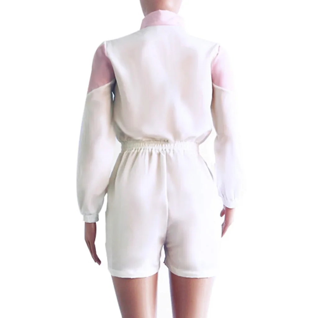 Женская мода сплошной цвет патч v-образным вырезом игровой костюм с коротким рукавом Повседневный короткий комбинезон