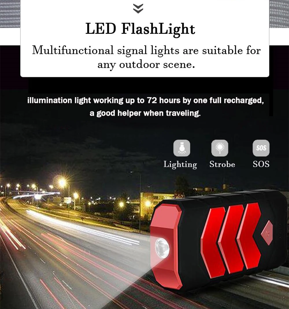 Быстрый запуск 12V бензиновый автомобиль (до 5.0L) и дизельный автомобиль (до 3.0L) за считанные секунды в тех случаях, когда автомобильного аккумулятора. Когда вы путешествуете в небольшом месте, и ваш автомобильный аккумулятор не работает, вы можете использовать этот автомобильный стартер для запуска вашего автомобиля.