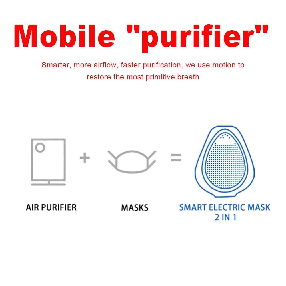 8. Интеллектуальная электрическая маска, эквивалентная мобильному «очистителю», конечный эффект, умнее, больший объем воздуха, восстановить первоначальное дыхание