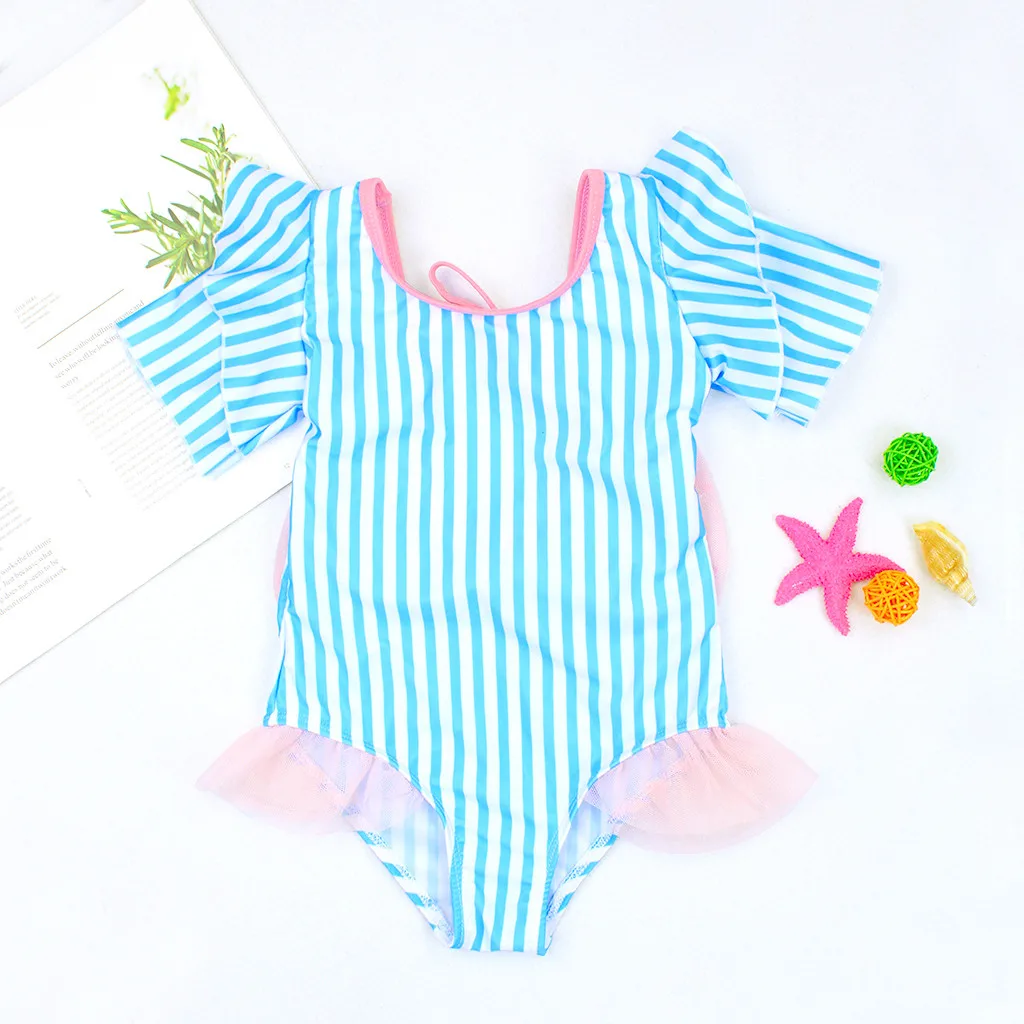 Купальный костюм с коротким рукавом и открытой спиной для девочек