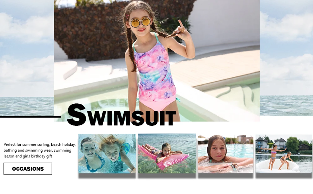 Изысканные ткани для плавательных костюмов: 82% полиэстер + 18% спандекс, на подкладке, с 100% полиэстер; Светильник и дышащий, высокий эластичный спандекс идеально подходит для выращивания, подарок для ребенка Функциональная Характеристика: приятная для кожи мягкая ткань для чувствительной кожи ребенка и долговечная для достижения наилучших результатов. Защита от Солнца-UPF 50, идеально подходит для девушек, чтобы насладиться их плаваньем и пляжным отдыхом Очень красивый узор: уникальный Единорог носки без пятки с рисунком яркий цвет привлекающий внимание, ваш ребенок будет в восторге Стильный дизайн: купальный костюм из двух предметов, топ с принтом и треугольные брюки с бантами по бокам (банты только для внешнего вида), плечевой ремень не регулируется О размере: 4 размера в наличии. Размер s переносится из Азиатского размера, если вы не уверены в размере, пожалуйста, не стесняйтесь связаться с нами