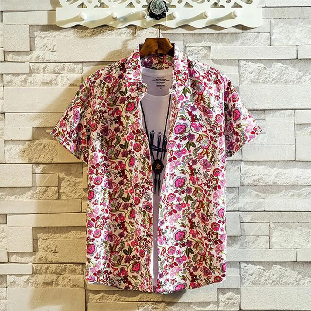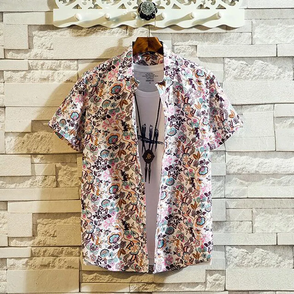 Мужская Повседневная рубашка с коротким рукавом с принтом Гавайи