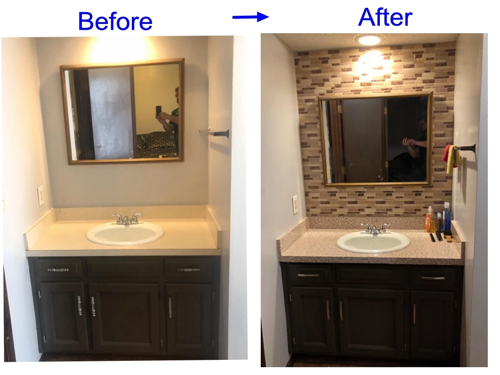 О: плитка может быть легко установлена непосредственно над существующими панелями или гладкой поверхностью.
