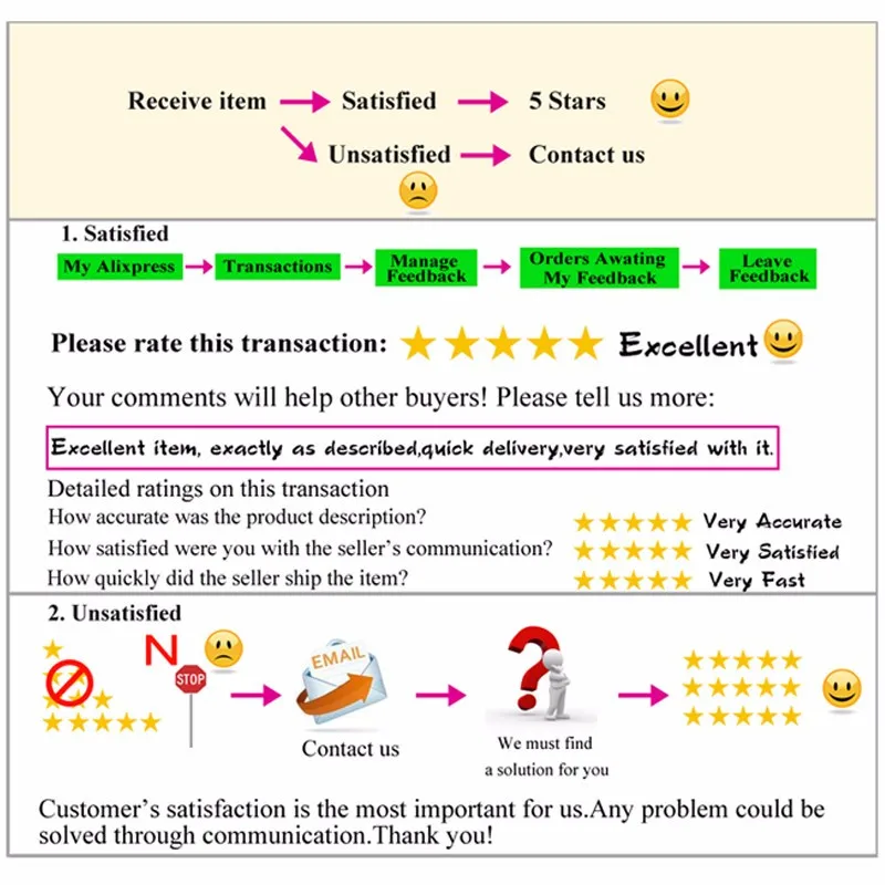 Мы ценим 5-звездочные положительные отзывы, это хорошо для нашего долгосрочного бизнеса. Мы также отправим вам такие же отзывы.
