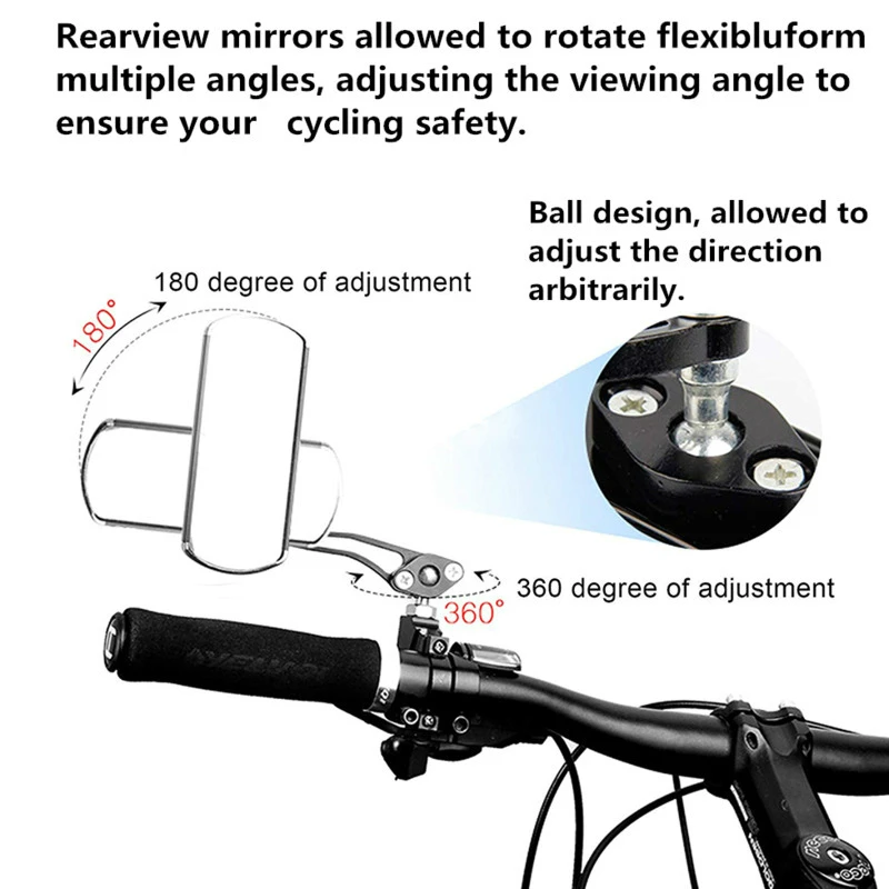 5.Полная Угловая регулировка: Наше зеркало для велосипеда построено для поворота на 360 ° для максимального покрытия. Очень легко настроить под желаемый угол. Не забудьте закрепить винт после регулировки.