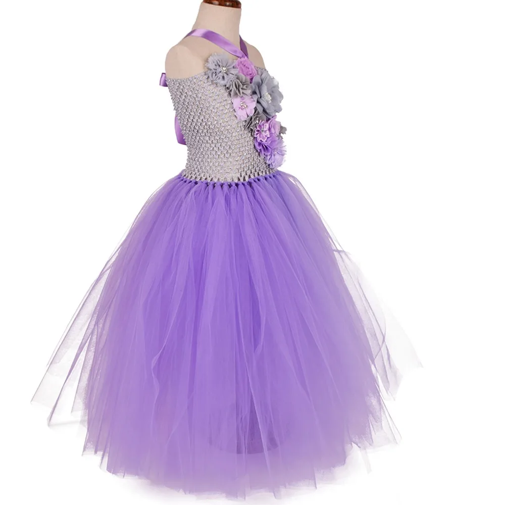 Это платье-пачка изготовлено из 2 слоев фатина лавандового цвета!Он прикреплен к лифу и украшен множеством цветов и регулируемыми лентами.
