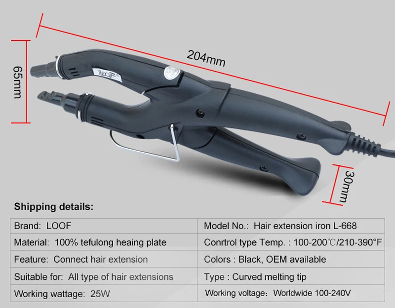 1PCS Flat Shape Fusion Connector Iron Wand Heat Tools For Keratin Bonded Hair Extensions