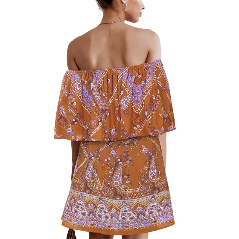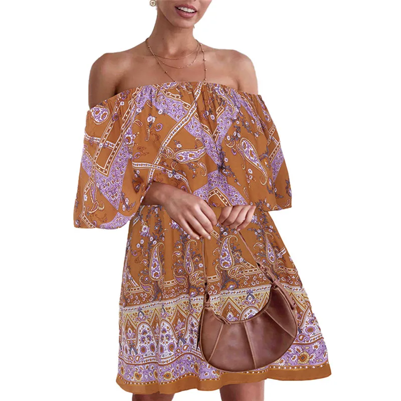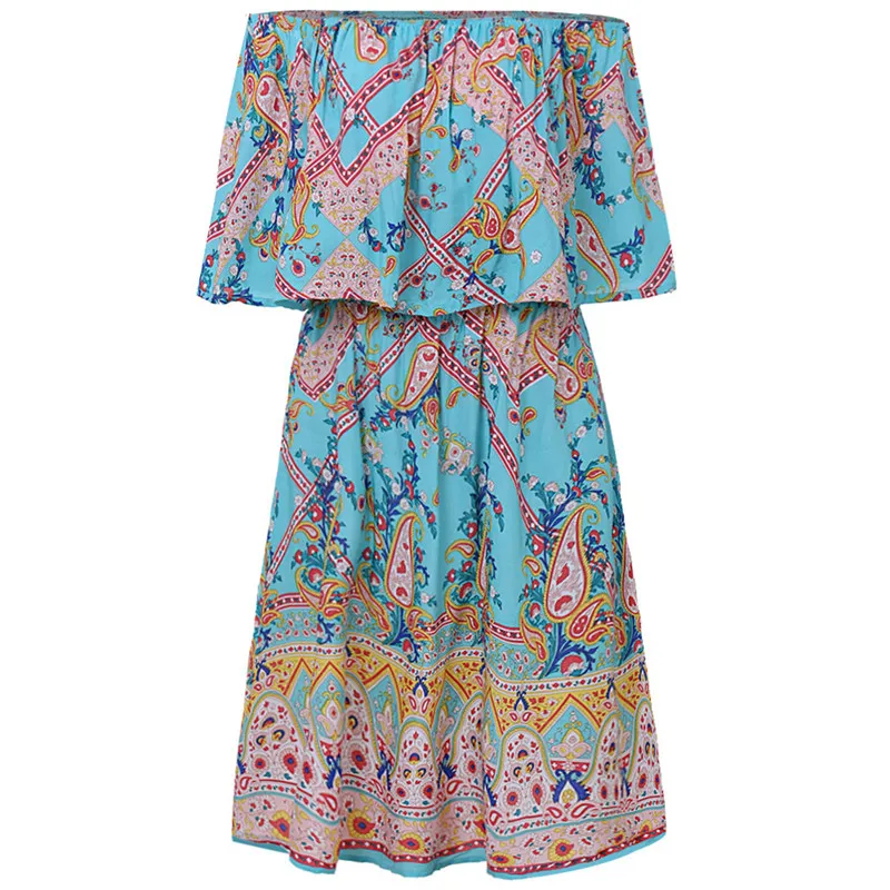 Сексуальное женское платье с открытыми плечами, новое модное свободное Повседневное платье миди в стиле бохо с цветочным принтом, Летний Пляжный праздничный сарафан, Лидер продаж, Vestido!
