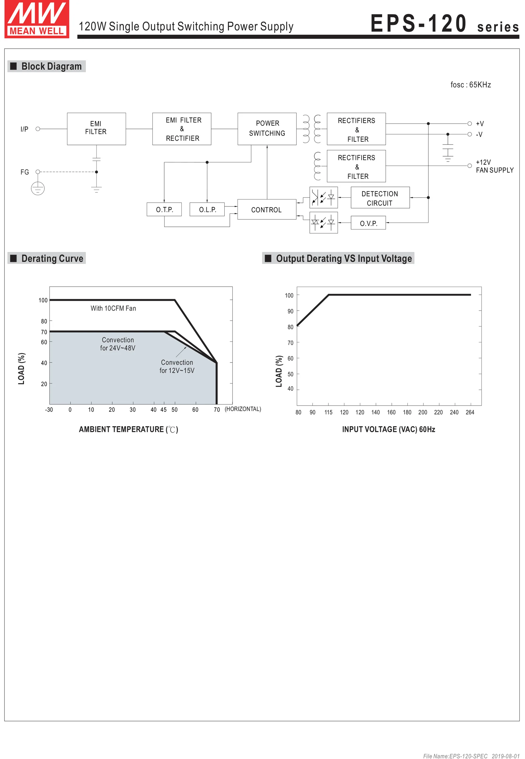 Эффективность составляет до 91%, а чрезвычайно низкое энергопотребление без нагрузки ниже 0,3 Вт. EPS-120