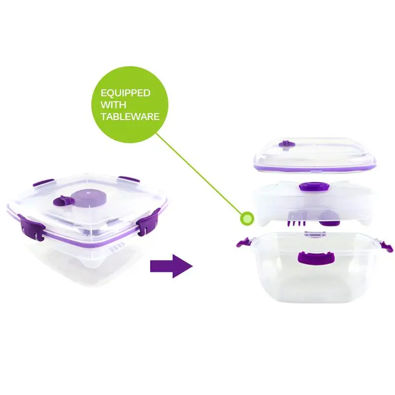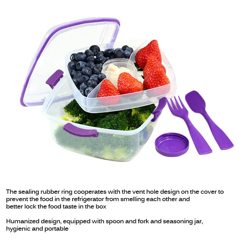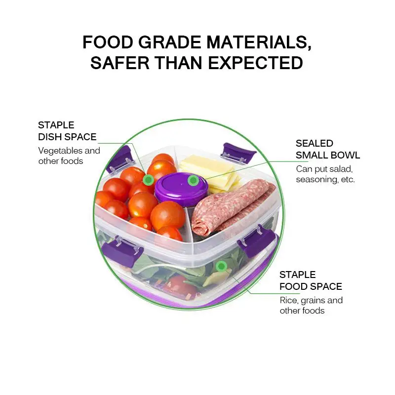 Встроенная герметичная маленькая миска, вы можете положить салатную заправку, приправа и т. д., очень удобно.